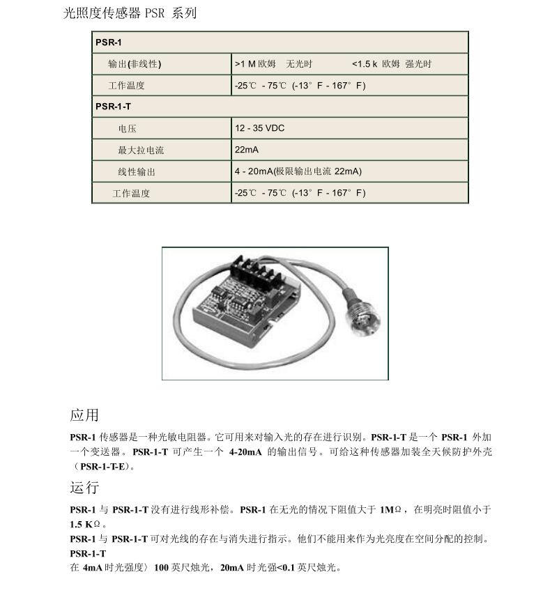 • 光照度傳感器 PSR